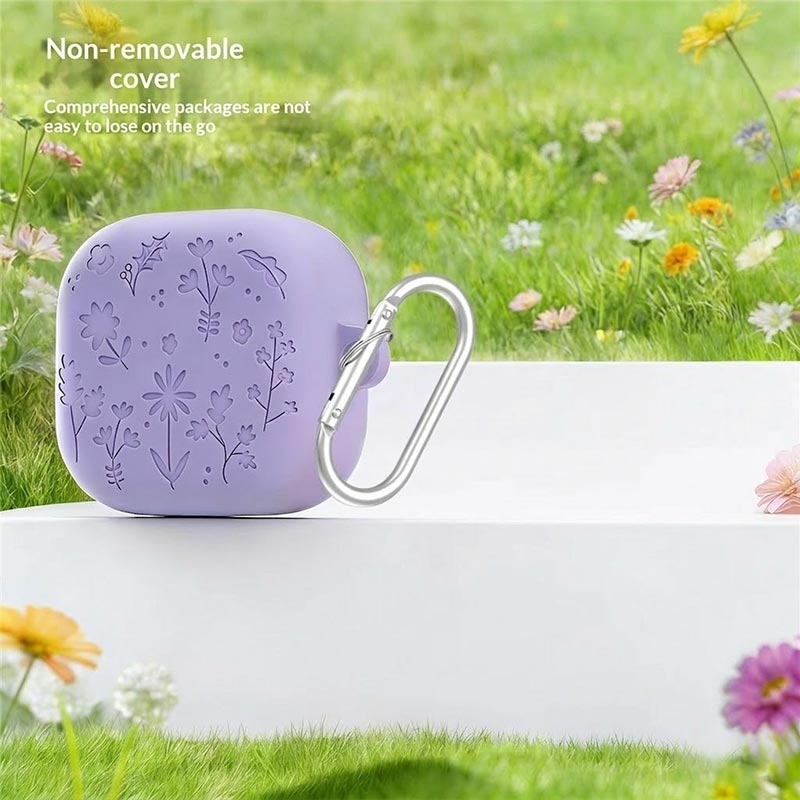 Kukallinen kaiverrettu silikonikotelo puhdistuskynillä ja karabiinilla Samsung Galaxy Buds4- ja Galaxy Buds4 Pro -kuulokkeille