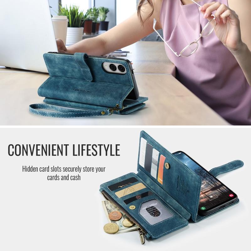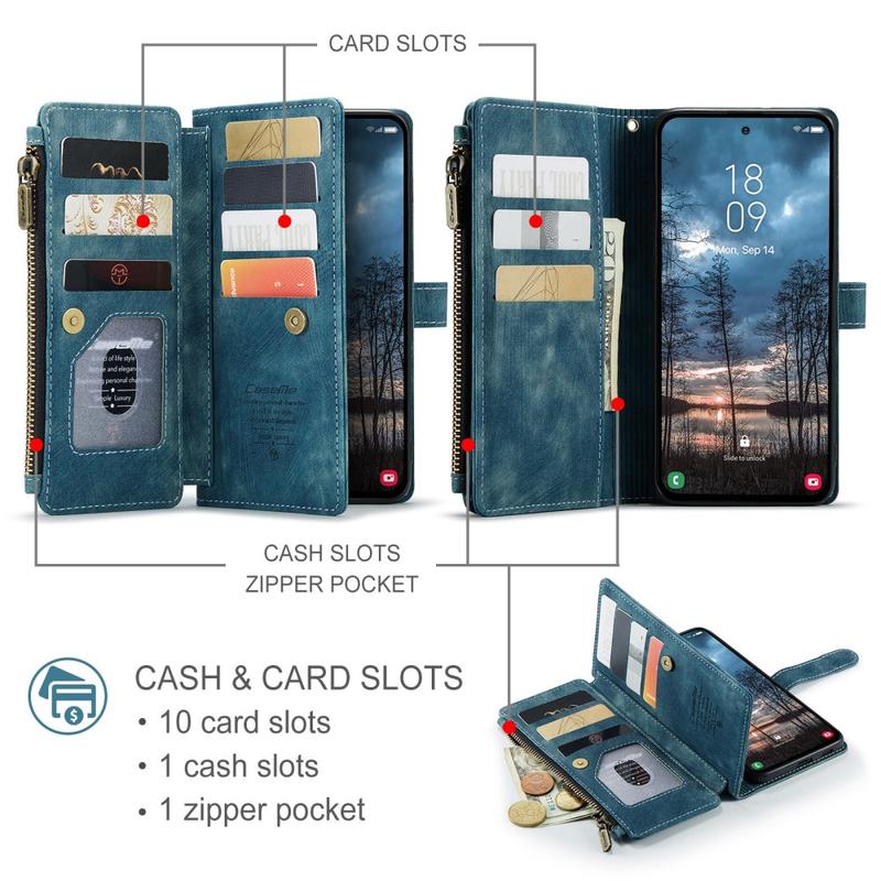 Caseme C30 on monitoiminen lompakkokotelo Samsung Galaxy S25 Edge:lle, joka tarjoaa tehokkaan kattavan suojan ja ainutlaatuisen, hienostuneen muotoilun. Tämä tyylikäs kotelo on valmistettu korkealaatuisesta polyuretaanista, ja se on vahvistettu iskunkestävällä TPU-sisäkuorella, joka istuu Samsung Galaxy S25 Edge:lle suorastaan täydellisesti. Lisäksi Caseme C30 -lompakkokotelossa on lukuisia korttipaikkoja, yksi suuri rahalokero sisällä ja yksi vetoketjullinen ulkotasku, jotka kaikki on suojattu turvallisella magneettisuljuksella.