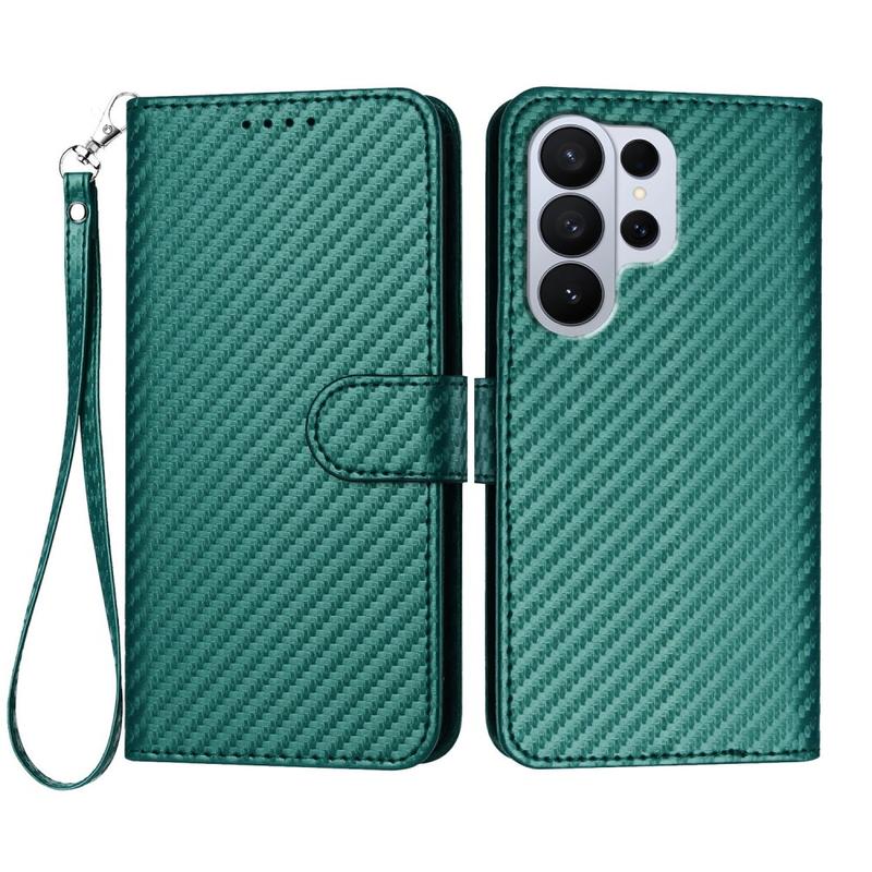 Premium lompakkokotelo hihnalla - Samsung Galaxy S26 Ultra - Hiilikuitu tekstuuria