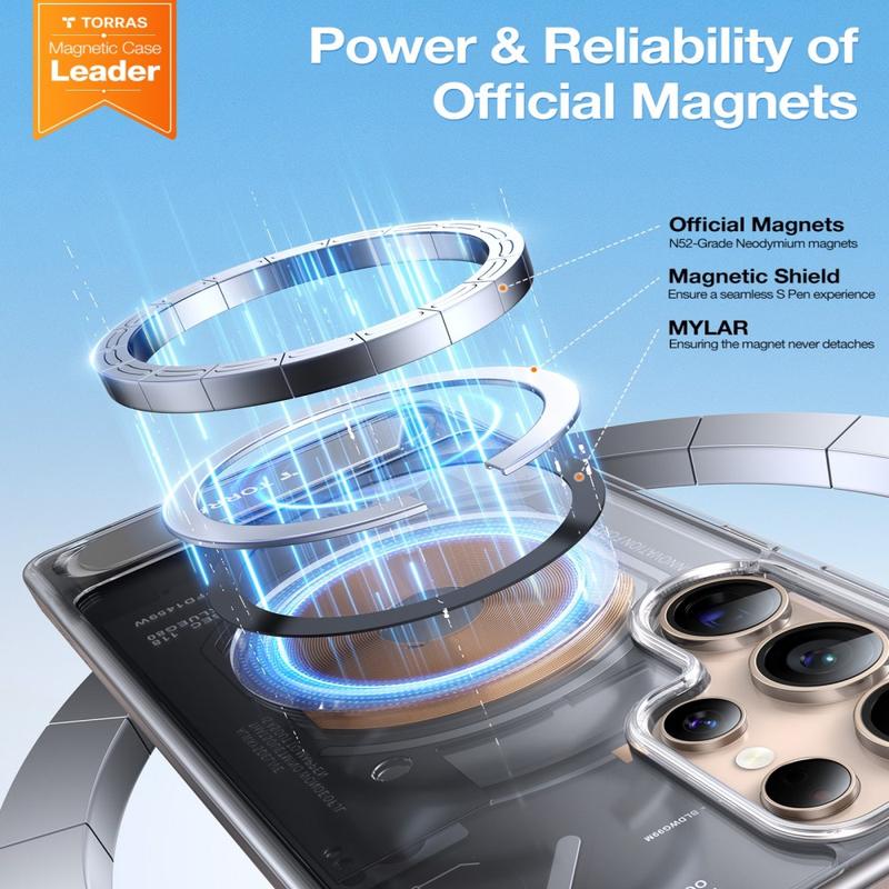 Torras Ostand L1 -magneettikotelo on valmistettu huolellisesti tasapainotetusta TPU:n, PC:n ja metallin yhdistelmästä, joka takaa kestävyyden tyylistä tinkimättä. Tämä monimateriaalirakenne suojaa Samsung Galaxy S26 Ultra -puhelintasi päivittäiseltä kulutukselta säilyttäen samalla tyylikkään, modernin ulkonäön, joka tuntuu mukavalta kädessä.