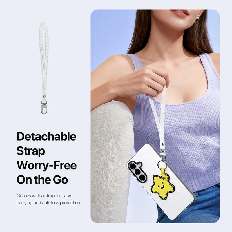 Mukana on irrotettava hihna, joka helpottaa kantamista matkoilla, työmatkoilla tai päivittäisissä toiminnoissa. Se tarjoaa lisäturvaa katoamisen varalta ja antaa samalla Samsung Galaxy S26 -puhelimellesi muodikkaan lisävarusteen kosketuksen.