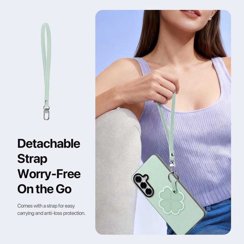 Mukana on irrotettava hihna, joka helpottaa kantamista matkoilla, työmatkoilla tai päivittäisissä toiminnoissa. Se tarjoaa lisäturvaa katoamisen varalta ja antaa samalla Samsung Galaxy S26 -puhelimellesi muodikkaan lisävarusteen kosketuksen.