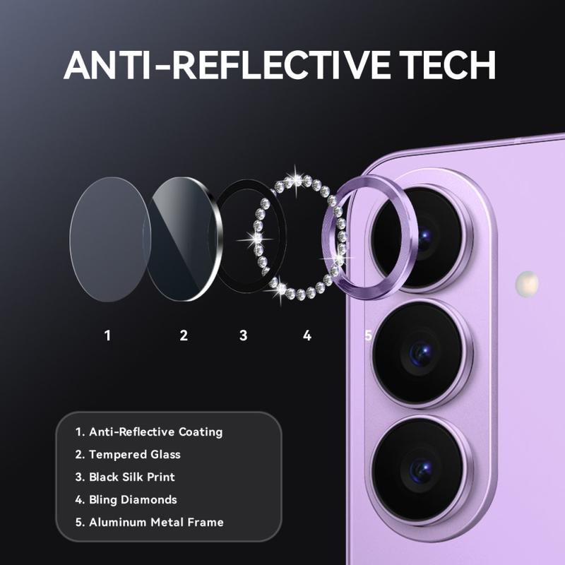 NORTHJO Rhinestone Lens Protector tarjoaa molempien maailmojen parhaat puolet - ensiluokkaista kimallusta ja lujaa kestävyyttä. Se parantaa puhelimesi ulkonäköä säilyttäen samalla ammattimaisen valokuvakirkkauden ja jokapäiväisen suojan.