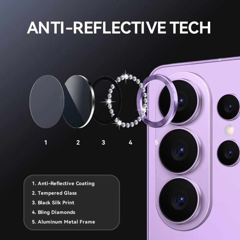 NORTHJO Rhinestone Lens Protector tarjoaa molempien maailmojen parhaat puolet - ensiluokkaista kimallusta ja lujaa kestävyyttä. Se parantaa puhelimesi ulkonäköä säilyttäen samalla ammattimaisen valokuvakirkkauden ja jokapäiväisen suojan.