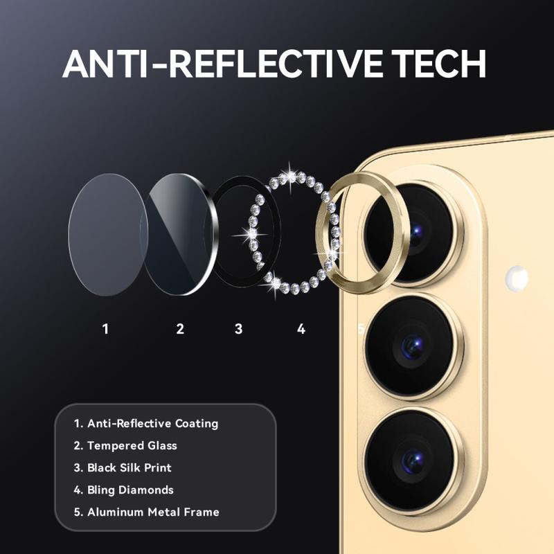 NORTHJO Rhinestone Lens Protector tarjoaa molempien maailmojen parhaat puolet - ensiluokkaista kimallusta ja lujaa kestävyyttä. Se parantaa puhelimesi ulkonäköä säilyttäen samalla ammattimaisen valokuvakirkkauden ja jokapäiväisen suojan.
