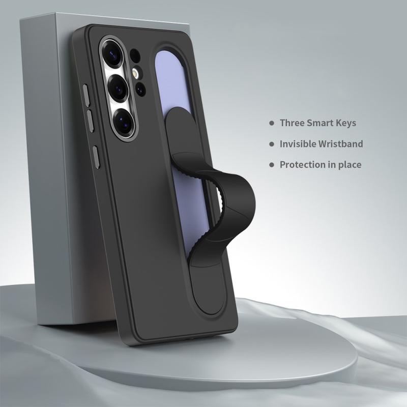 Sisäänvedettävä TPU-hihna tarjoaa turvallisen otteen yhdellä kädellä ja vähentää tahattomia pudotuksia. Kun se on ulosvedettynä, se toimii myös jalustana ja tarjoaa sekä pysty- että vaakasuuntaisen katselukulman elokuvia, videopuheluita tai esityksiä varten.