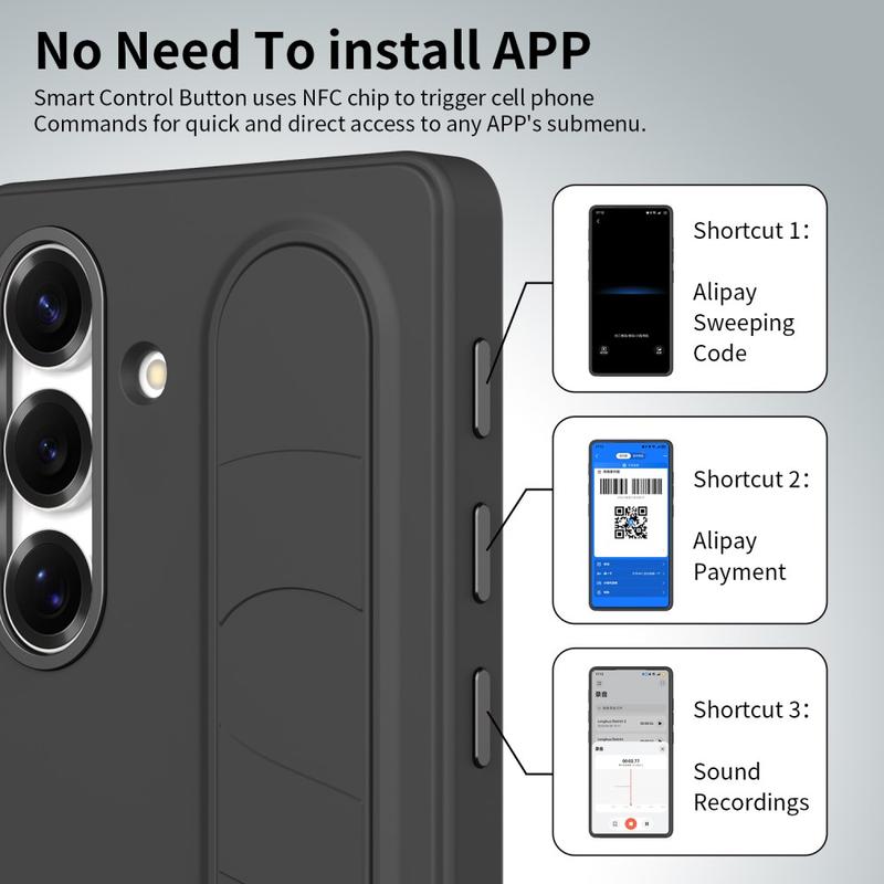 Tässä älykkäässä hybridikotelossa on kolme älykästä NFC-yhteensopivaa painiketta, joiden avulla voit määrittää pikakäytön sovelluksiin, kuten Kamera, Taskulamppu tai Kuvakaappaus, yhdellä painalluksella. Ei latausta, ei ylimääräisiä sovelluksia - vain yksinkertaisia, välittömiä toimintoja.