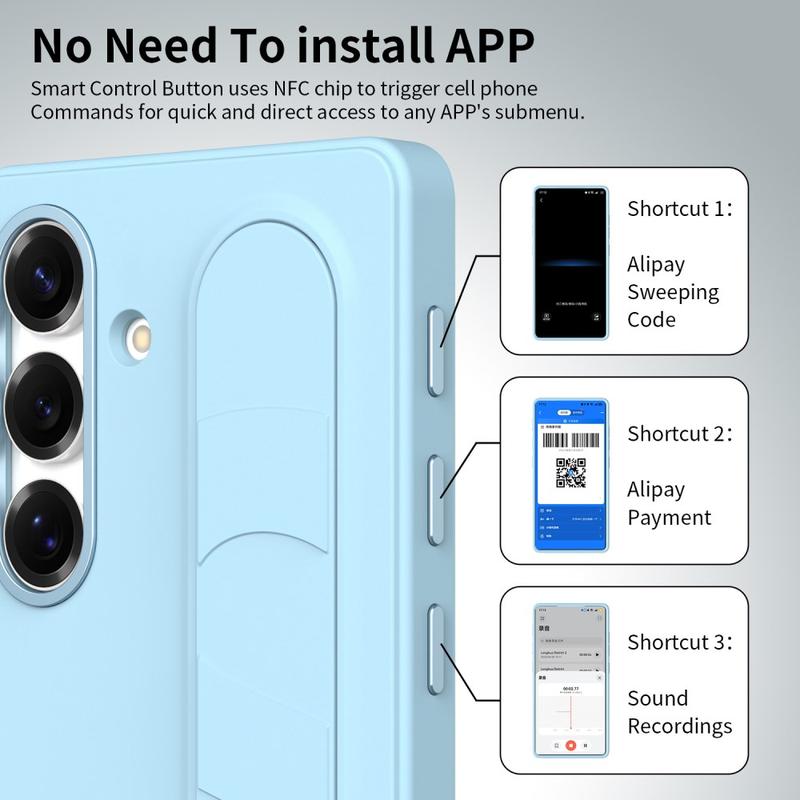 Tässä älykkäässä hybridikotelossa on kolme älykästä NFC-yhteensopivaa painiketta, joiden avulla voit määrittää pikakäytön sovelluksiin, kuten Kamera, Taskulamppu tai Kuvakaappaus, yhdellä painalluksella. Ei latausta, ei ylimääräisiä sovelluksia - vain yksinkertaisia, välittömiä toimintoja.