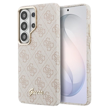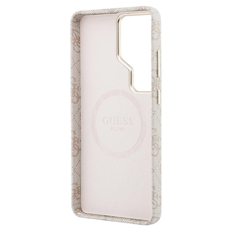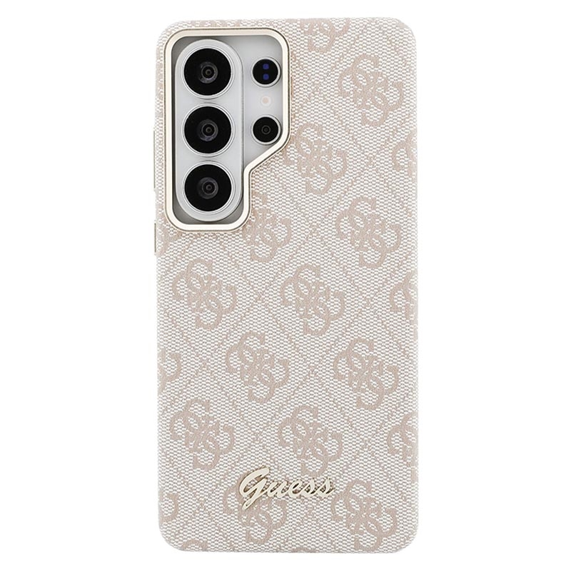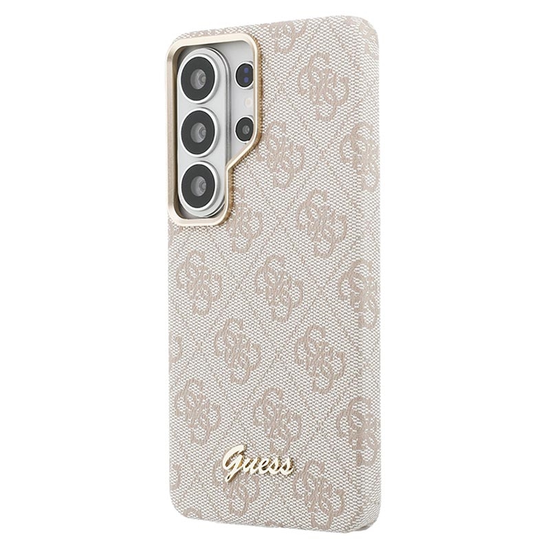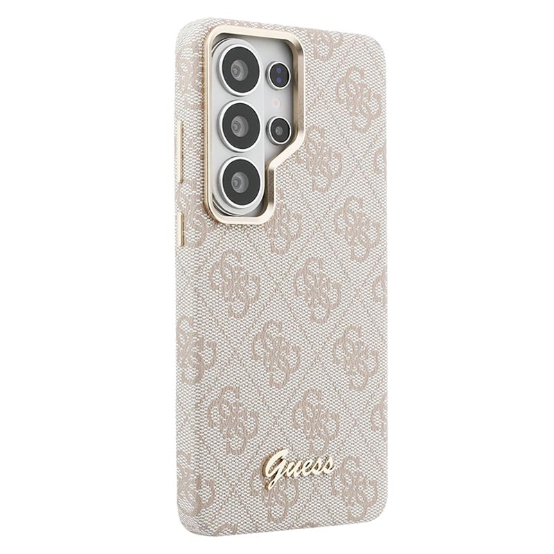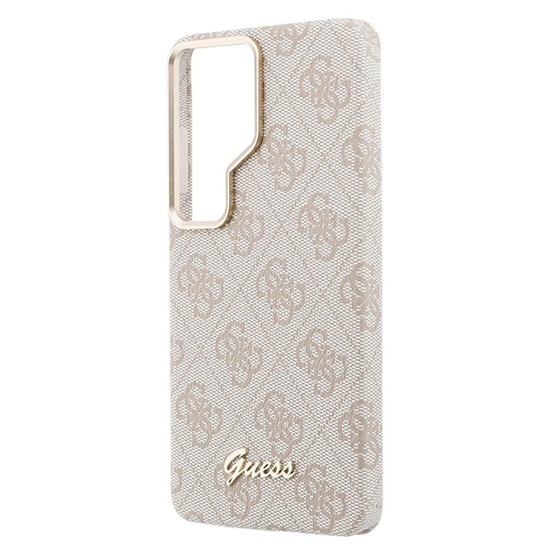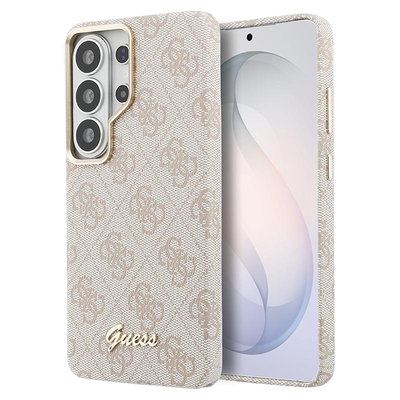 Anna Samsung Galaxy S26 Ultra -puhelimellesi tyylikäs ulkonäkö Guess PU 4G Script Metal Logo Magnetic Case -kotelolla. Tunnusomainen 4G-kuvio ja kullansävyinen Guess-metallilogo luovat tyylikkään ja korkealaatuisen viimeistelyn, kun taas kevyt PC-rakenne ja polyuretaanipinnoite tarjoavat päivittäisen suojan ja mukavan, turvallisen otteen. Integroitu magneetti helpottaa käyttöä magneettisten puhelintelineiden kanssa ilman, että kotelo kasvaa.