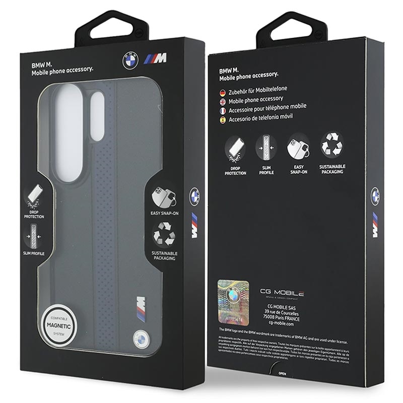 Paranna Samsung Galaxy S26 Ultra -puhelintasi BMW M Perforated Stripes and Metal Logo -magneettikotelolla, joka on suunniteltu niille, jotka arvostavat urheilullista ylellisyyttä ja ensiluokkaisia yksityiskohtia. Elegantilla rei'itetyllä raitakuvioinnilla ja metallisella BMW-logolla varustettu kotelo yhdistää autoteollisuudesta inspiraationsa saaneen estetiikan ja käytännöllisen suojan jokapäiväiseen käyttöön. Laadukkaasta PU-materiaalista valmistettu kotelo tarjoaa hienostuneen viimeistelyn, turvallisen otteen ja pitkäikäisen kestävyyden ohuessa muodossaan.
