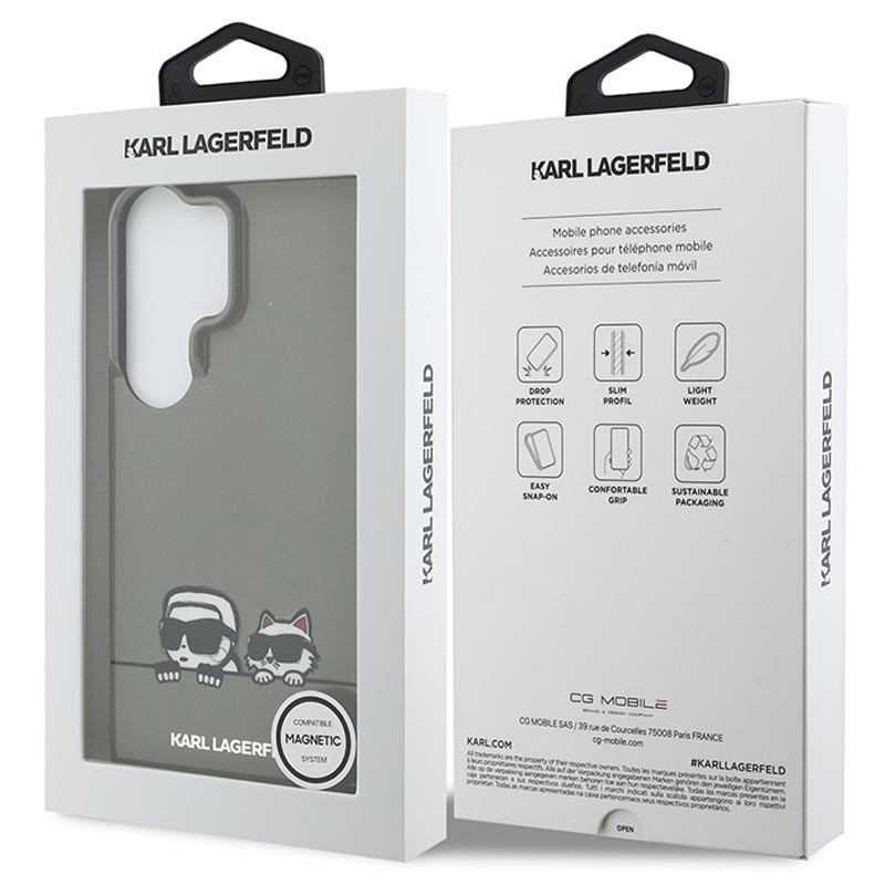 Samsung Galaxy S26 Ultra Karl Lagerfeld IML Karl&Choupette Peekaboo-logo magneettikotelo - musta