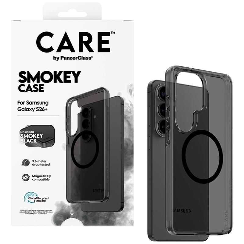 Care by PanzerGlass Urban Explorer Smokey -magneettikotelo Samsung Galaxy S26+ - 100 % kierrätettyä muovia, 3,6 metrin pudotustestattu, kellastumattomuustakuu, parannettu kameran suojaus