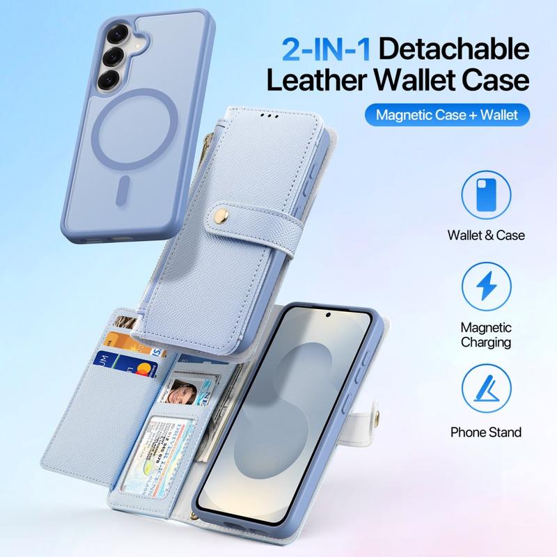 Päivitä Samsung Galaxy S26 -puhelimesi Dux Ducis Lawa -sarjan magneettikotelolla, joka on ensiluokkainen lisävaruste, jossa yhdistyvät tyyli ja toiminnallisuus. Tässä aidosta naudannahasta valmistetussa mustassa kotelossa on irrotettava vetoketjullinen lompakko, jonka avulla voit säilyttää tärkeimmät tavarasi turvallisesti. Magneettinen muotoilu takaa helpon kiinnittämisen ja irrottamisen ja tarjoaa joustavuutta päivittäiseen käyttöön. Tyylikkään ja kestävän rakenteensa ansiosta tämä kotelo tarjoaa kattavan suojan laitteellesi ja säilyttää samalla hienostuneen ulkonäön.