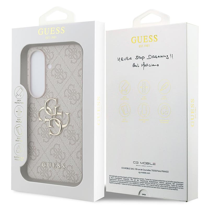 Tämä kotelo tarjoaa suorastaan upean tyylin ja suojan naarmuilta ja päivittäisiltä vaurioilta, joita Samsung Galaxy S26+ tarvitsee päivittäisessä käytössä. Guess 4G Big Metal -logokotelon suunnittelussa on painettu Guessin logo loistavassa keinonahkakuviossa kotelon takana.