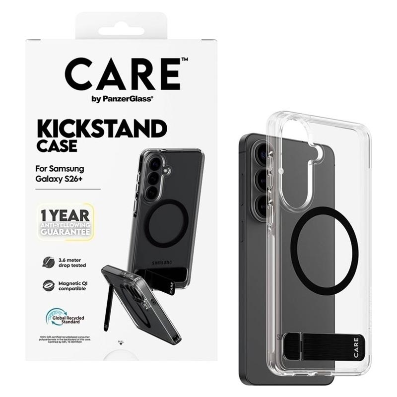 Samsung Galaxy S26+ PanzerGlass Kickstand Care Kotelo - MagSafe-yhteensopiva - Kirkas / Musta