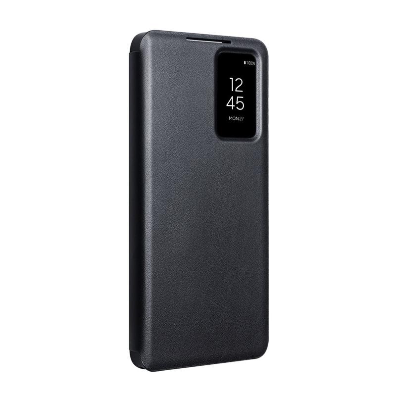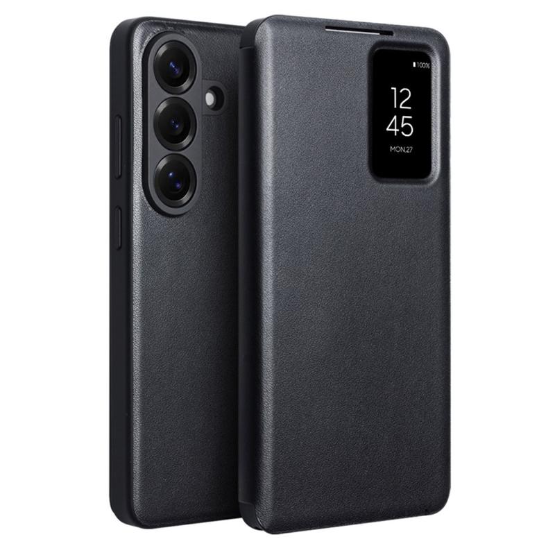 Samsung Galaxy S26+ Qialino Smart View Läppänahkakotelo - Musta