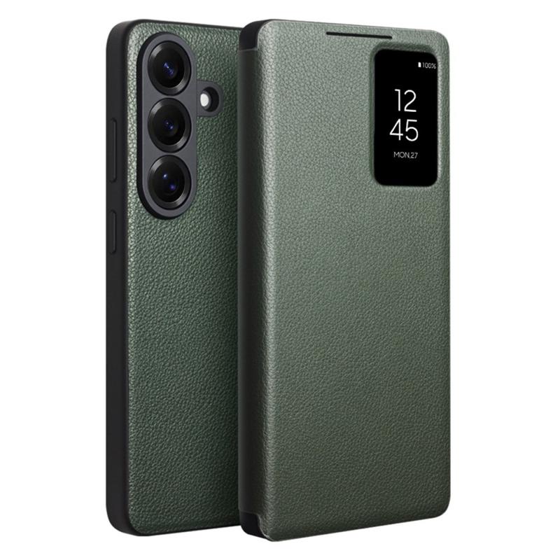 Samsung Galaxy S26 Qialino Smart View Läppänahkakotelo - Vihreä