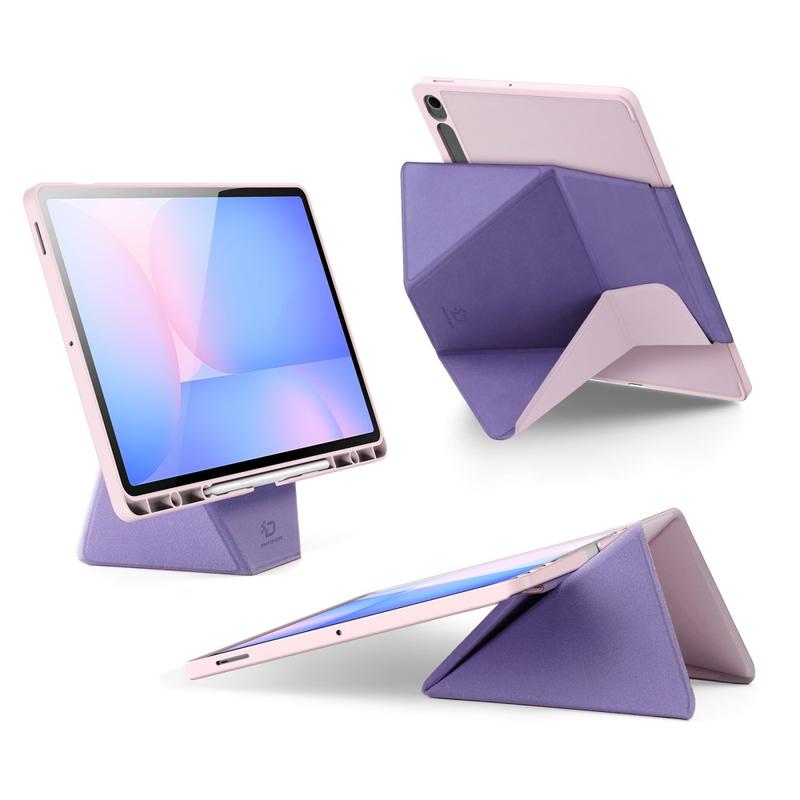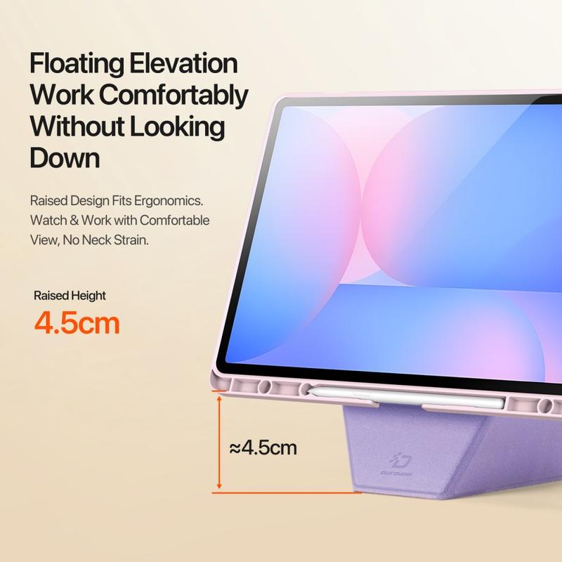 Tee Samsung Galaxy Tab S10 FE+ -laitteestasi todella monipuolinen työasema. DUX DUCIS Vers -sarjan kotelo nostaa tablettia noin 4,5 cm, jotta sitä voi katsella rasitusvapaasti, suojaa sitä päivittäisiltä iskuilta ja mahtuu sulavasti mihin tahansa laukkuun höyhenenkevyen rakenteensa ansiosta. Tämä kokoontaitettava suojakotelo mukautuu sekunneissa katselusta luonnosteluun.