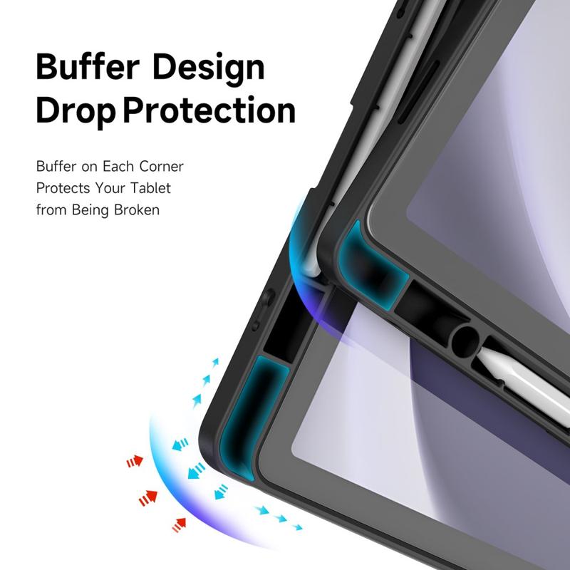 Sopii täydellisesti laitteeseesi: Ohjaimet (kamerat, kaiuttimet, portit ja painikkeet) ilman kotelon irrottamista: Tämä kotelo mahdollistaa täyden pääsyn kaikkiin ominaisuuksiin ja ohjaimiin (kamerat, kaiuttimet, portit ja painikkeet). Täydellinen istuvuus, tarkat leikkaukset ja painikkeet mahdollistavat helpon pääsyn tabletin kaikkiin ominaisuuksiin ja toimintoihin.