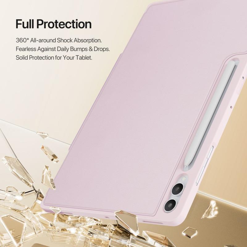 Tee Samsung Galaxy Tab S11 Ultra -laitteestasi todella monipuolinen työasema. DUX DUCIS Vers -sarjan kotelo nostaa tablettia noin 4,5 cm, jotta sitä voi katsella rasitusvapaasti, suojaa sitä päivittäisiltä iskuilta ja mahtuu sulavasti mihin tahansa laukkuun höyhenenkevyen rakenteensa ansiosta. Tämä kokoontaitettava suojakotelo mukautuu sekunneissa katselusta luonnosteluun.