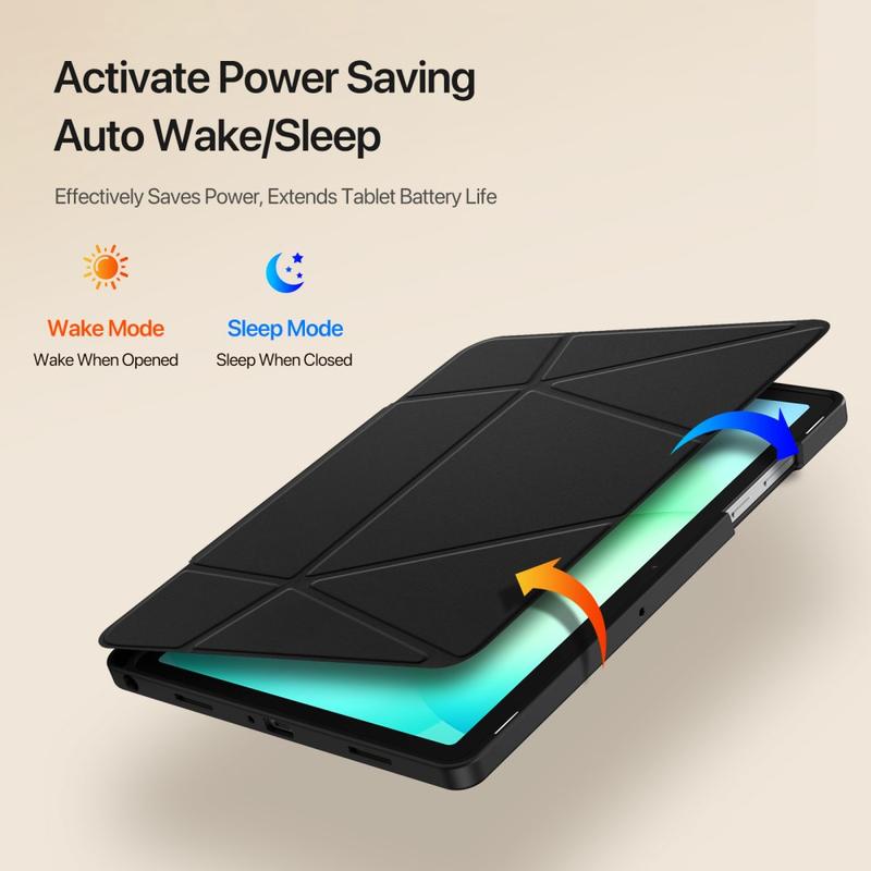 Tee Samsung Galaxy Tab A11+ -laitteestasi todella monipuolinen työasema. DUX DUCIS Vers -sarjan kotelo nostaa tablettia noin 4,5 cm, jotta sitä voi katsella rasitusvapaasti, suojaa sitä päivittäisiltä iskuilta ja mahtuu sulavasti mihin tahansa laukkuun höyhenenkevyen rakenteensa ansiosta. Tämä kokoontaitettava suojakotelo mukautuu sekunneissa katselusta luonnosteluun.