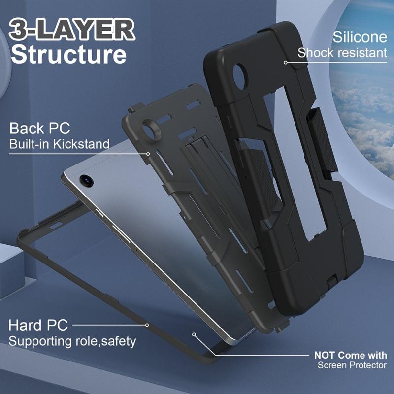 Samsung Galaxy Tab A11 Robottityylinen hybridikotelo - Kolmikerroksinen suojakotelo, jossa on sisäänrakennettu potkulaite ja kynänpidike