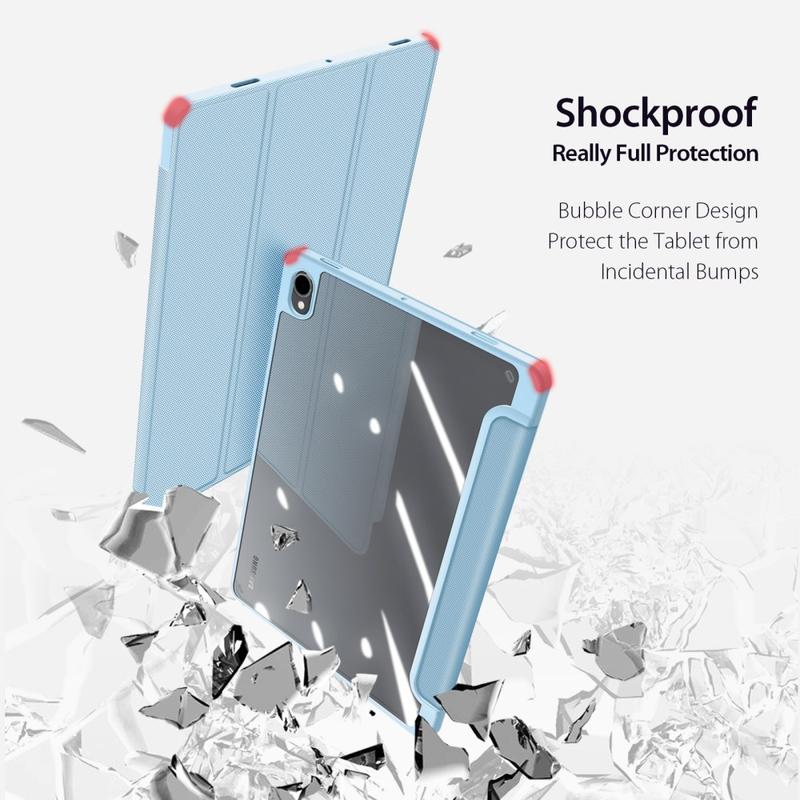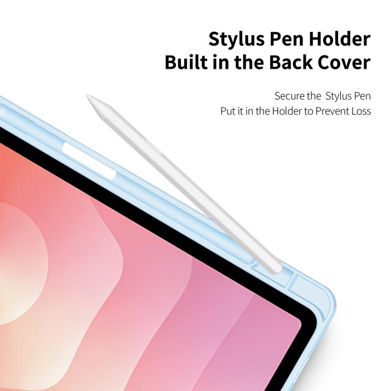 Tämän Dux Ducis Toby-suojakotelon avulla voi nyt jopa katsella videoita, katsella mediaa tai tehdä vastaavia harrastuksia handsfree-toiminnolla sen kolminkertaisen jalustatuensa ansiosta. Silti sillä käsitellä näpytellä, koska Dux Ducis Toby-suojakotelossa on kynän pidike sisäänrakennettuna takaosassa. Siksi kaikki nämä kotelon ominaisuudet sopivat täydellisesti Samsung Galaxy Tab S11:in kanssa.