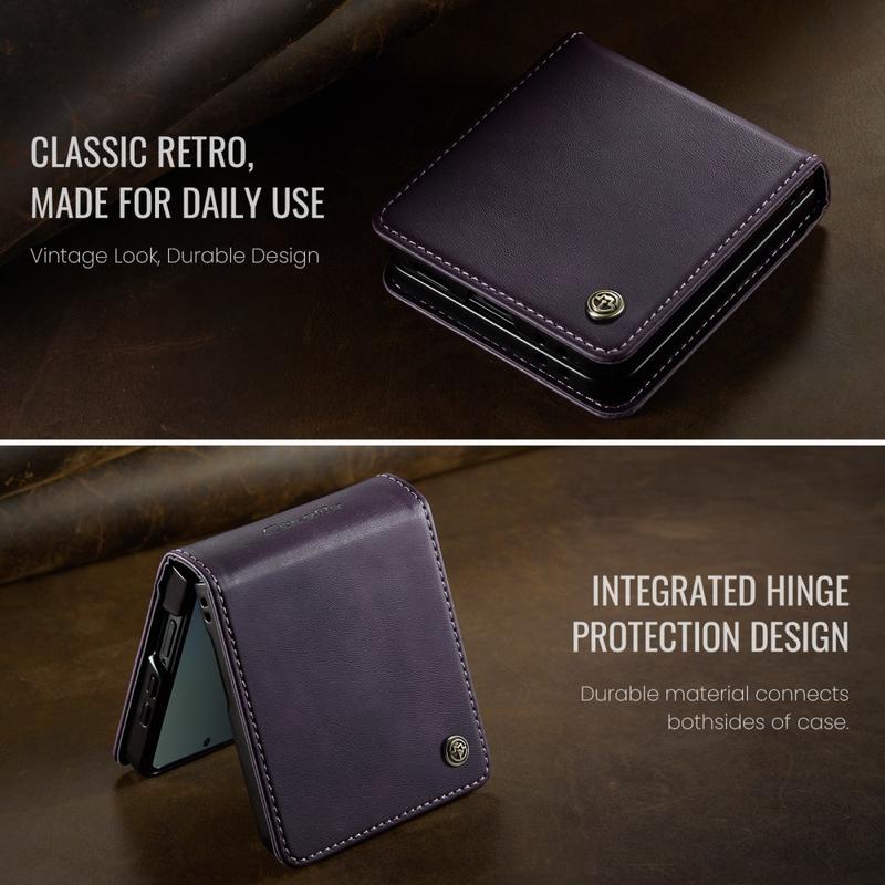 CASEME 033-sarjan lompakkokotelo Samsung Galaxy Z Flip7 -puhelimelle on valmistettu vasikkatekstuuripolyuretaanista yhdistettynä TPU:hun, joka tarjoaa kokovartalosuojaa naarmuilta, iskuilta ja päivittäiseltä käytöltä säilyttäen samalla ensiluokkaisen, tyylikkään ulkonäön.