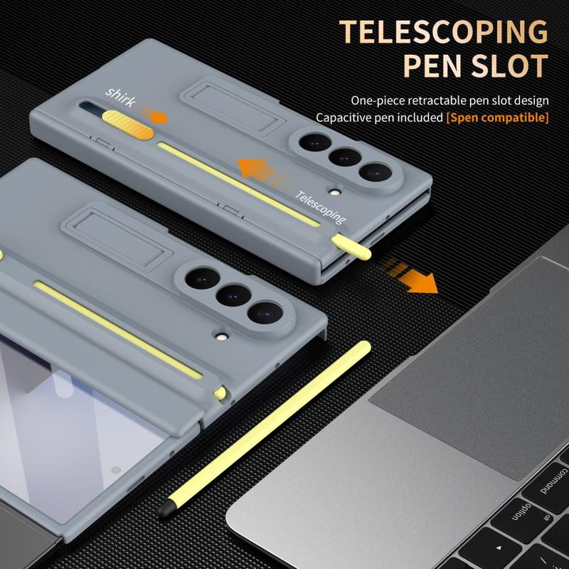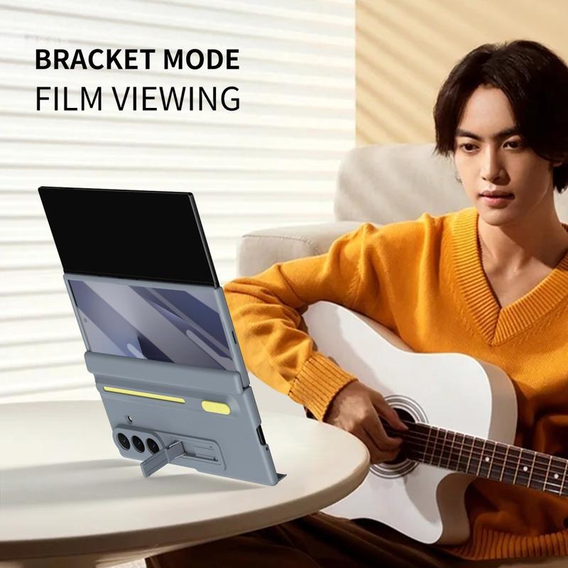 Tämä kotelo tarjoaa suojaa, toiminnallisuutta ja mukavuutta yhdessä täydellisessä paketissa. Mukana on potkulaite, näytönsuoja ja kynänsuoja, joten se poistaa ylimääräisten lisävarusteiden tarpeen ja tukee samalla täysin puhelimesi taitettavaa muotoilua.