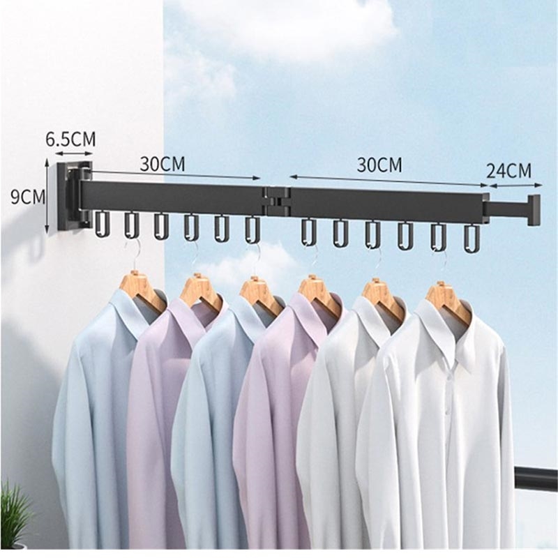 Säädettävä sisäänvedettävä seinään kiinnitettävä pyykkiteline - Tilaa säästävä vaatekoukku, jossa on 2 liitosta.
