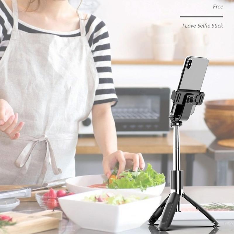 - 2-in-1-muotoilu: selfiekeppi + jalusta vakaaseen kuvaamiseen