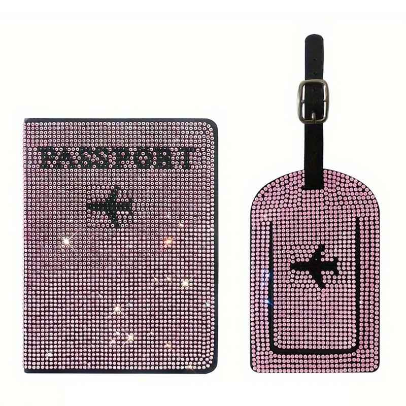 Setti, jossa passikotelo ja matkatavaralappu strasseilla - Kimalteleva polyuretaanista valmistettu matkajärjestäjä