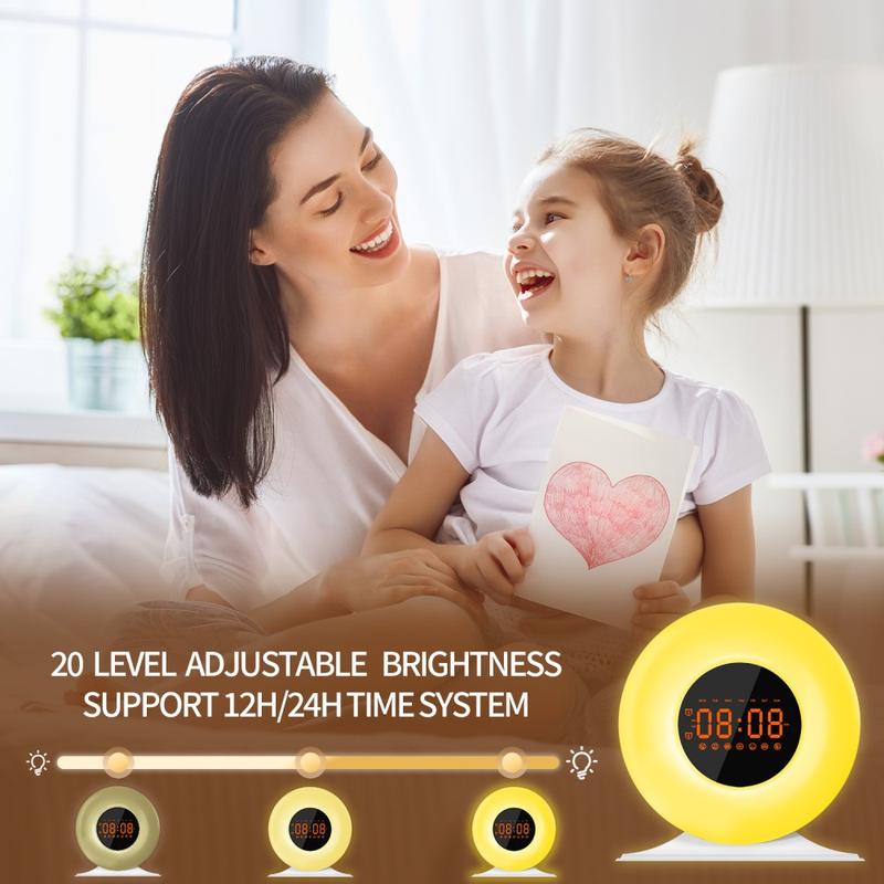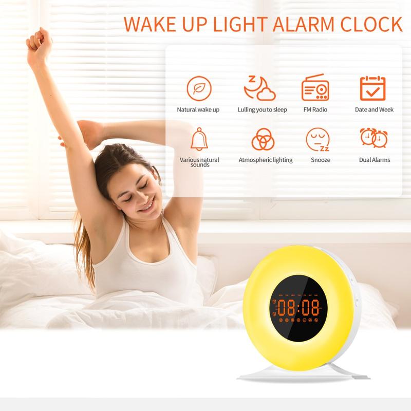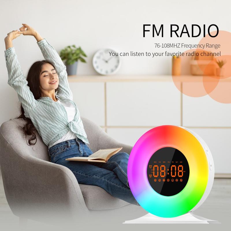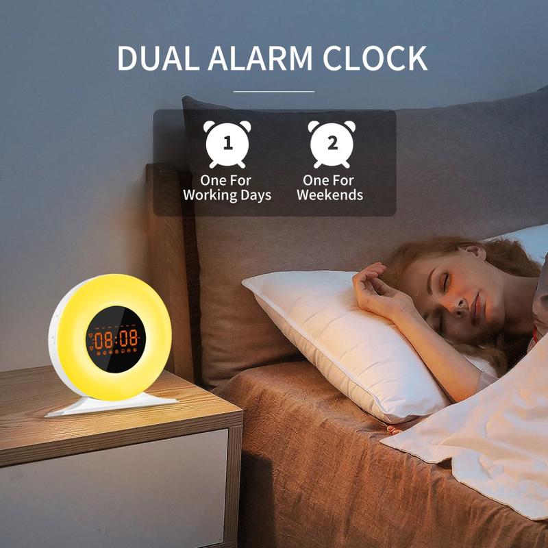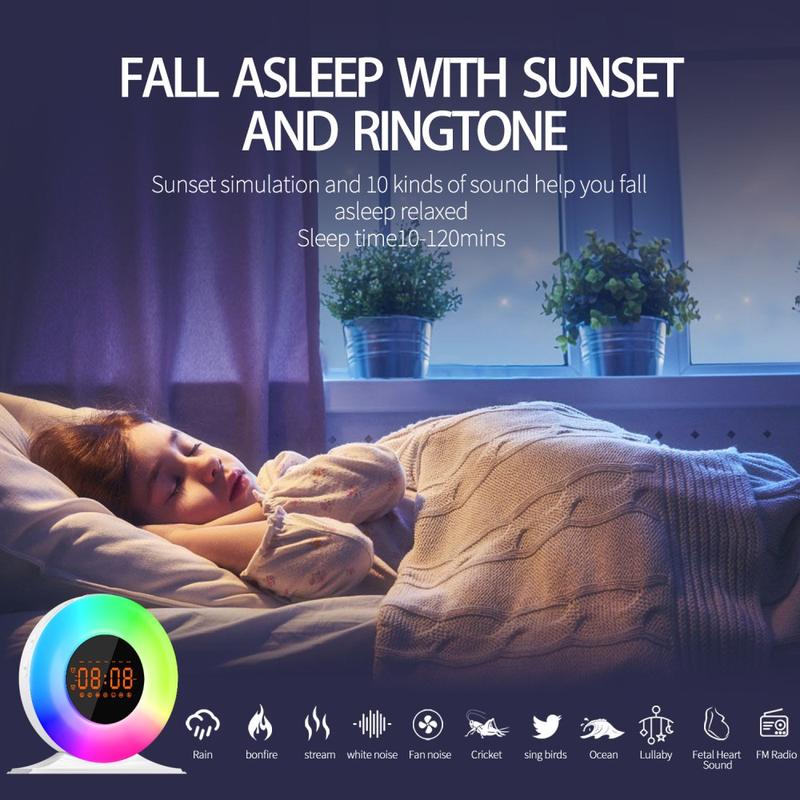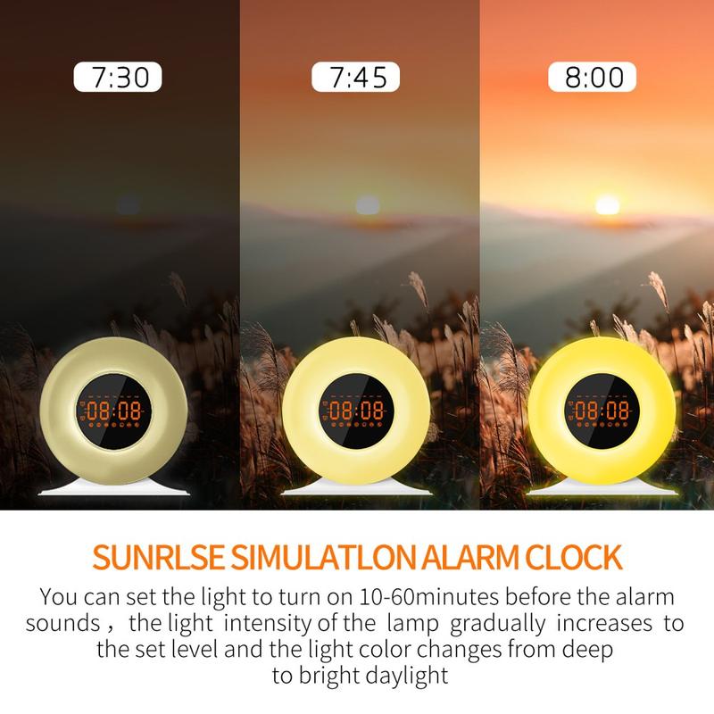 SH05 Auringonnousun herätyskello valkoisella kohinalla ja yövalolla - FM-radio, uniajastin
