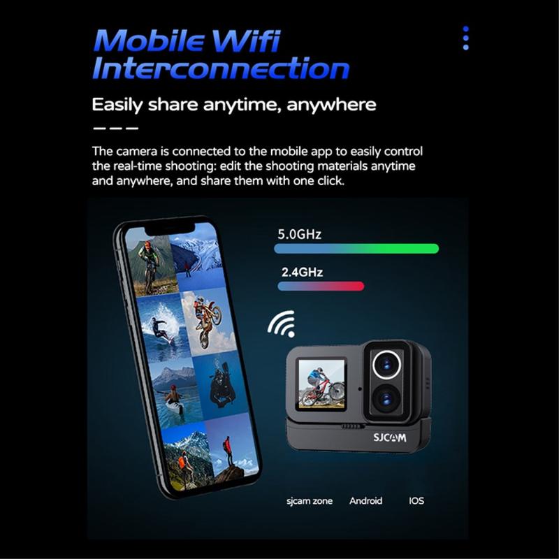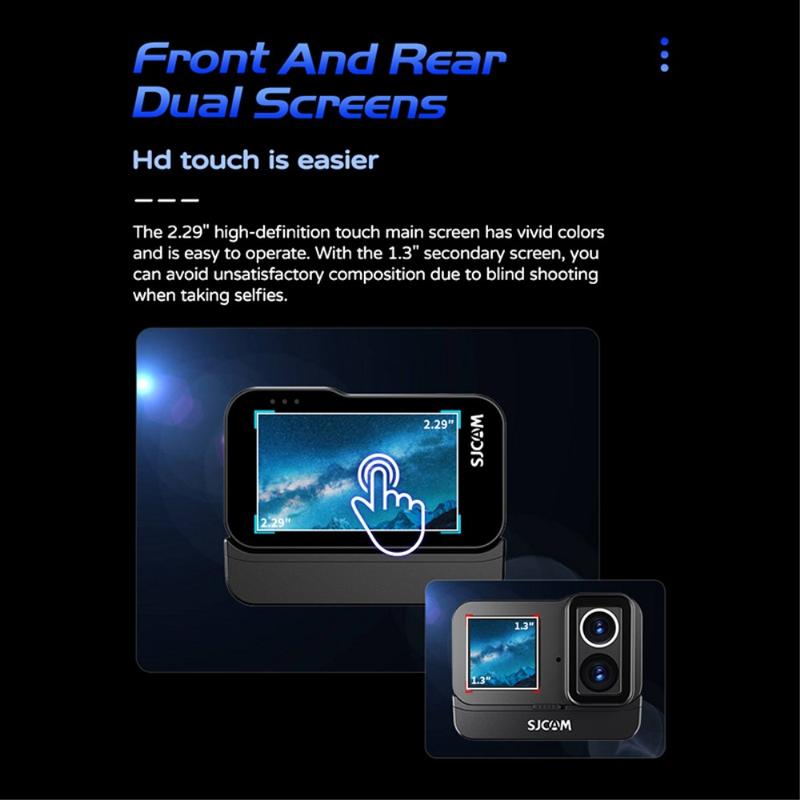 SJCAM SJ20 kaksoisobjektiivinen action-kamera - 4K30, kaksoisnäyttö, yönäköobjektiivi, 6-akselinen vakaus, 5 m vedenkestävä (30 m kotelon kanssa), Wi-Fi 2,4/5 GHz, USB-C