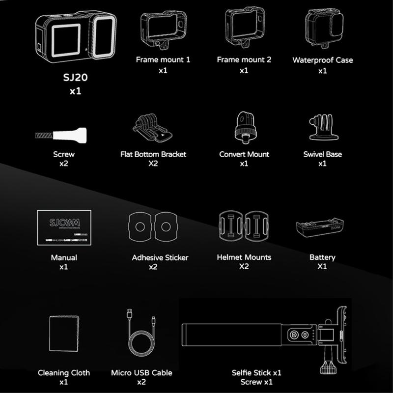 - 1 x SJCAM SJ20 kaksoisobjektiivinen action-kamera