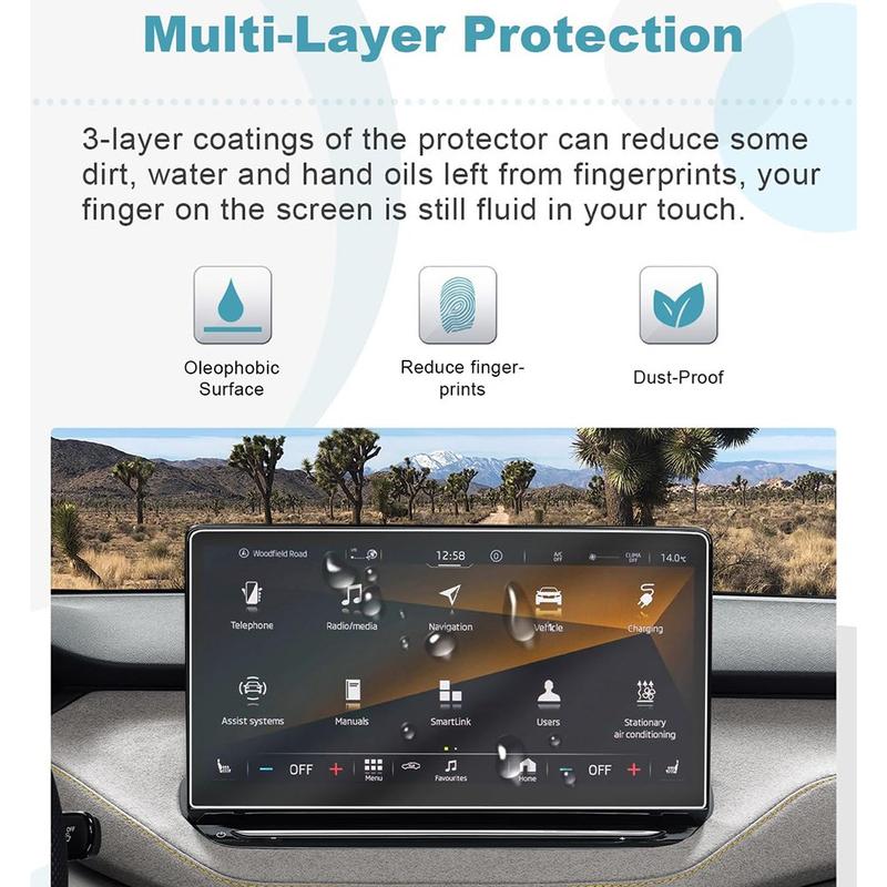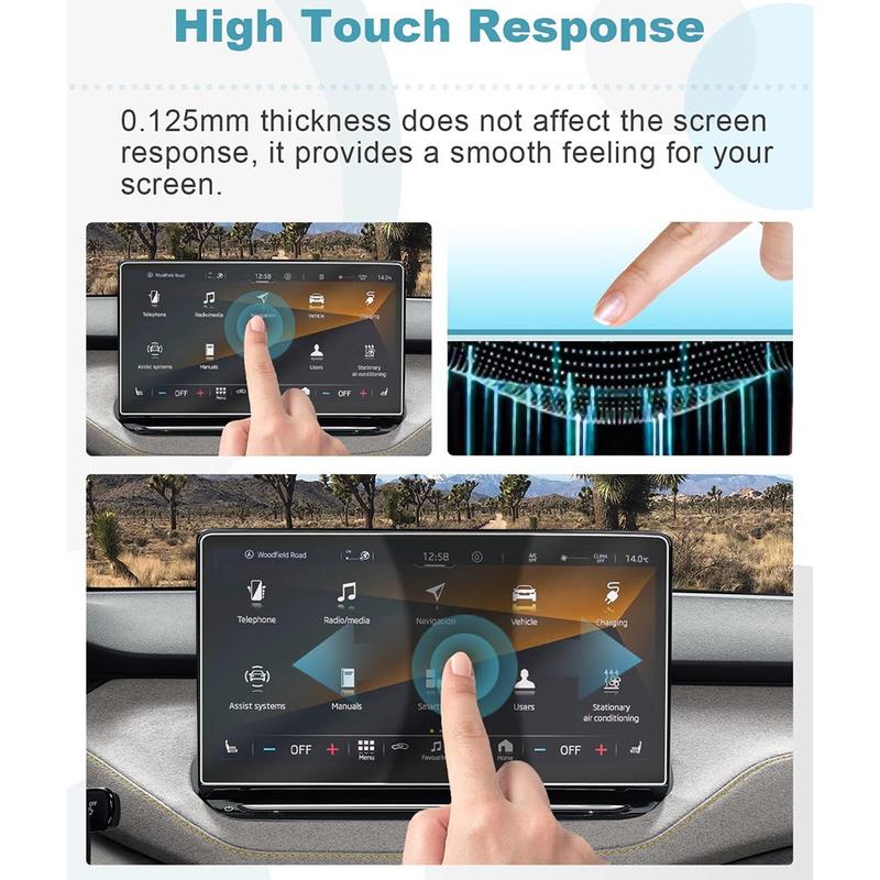 Autosi infotainment-näyttö on yksi sisätilan käytetyimmistä osista. Tämä karkaistu lasisuoja auttaa suojaamaan näyttöä naarmuilta ja sormenjäljiltä samalla, kun se pitää kosketusvasteen sujuvana ja kuvan terävänä. Se on yksinkertainen päivitys, joka auttaa säilyttämään ajoneuvosi sisätilan tekniikan arvon ja ulkonäön.