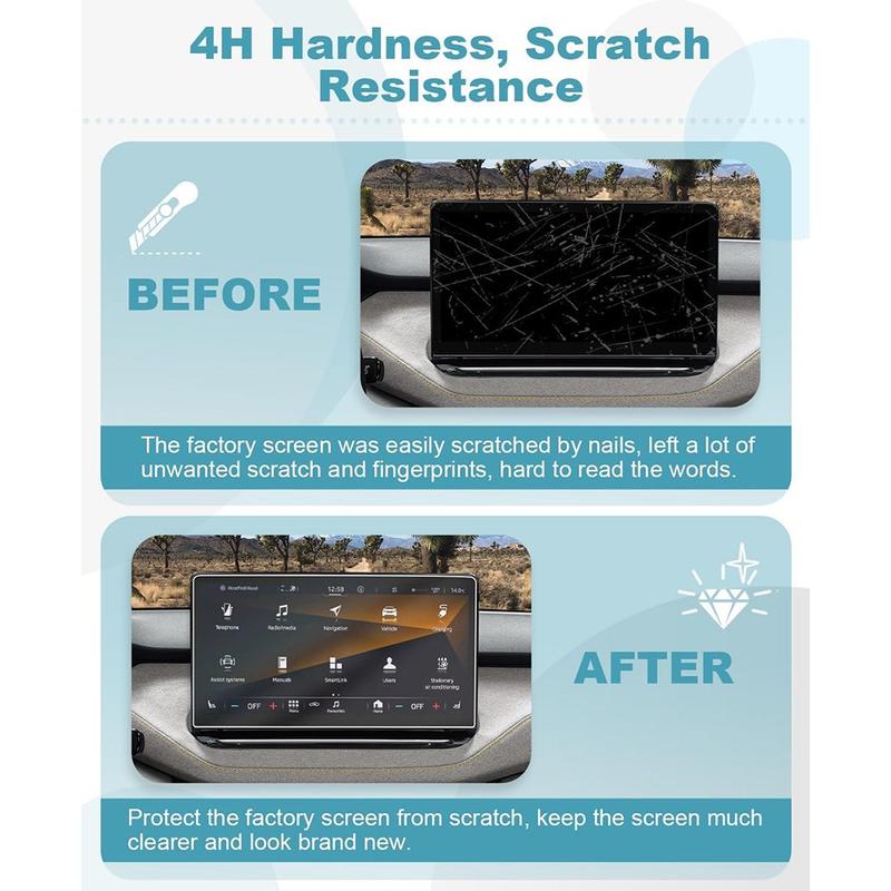 - Suojaa infotainment-näytöt avaimien, sormusten tai päivittäisen käytön aiheuttamilta naarmuilta