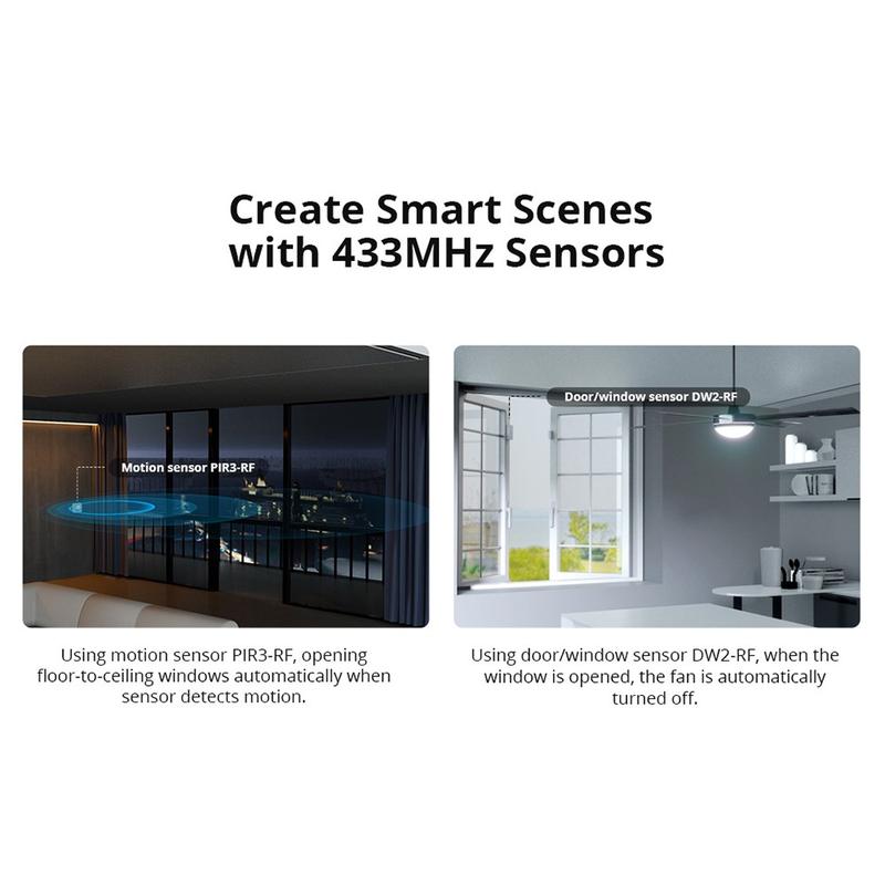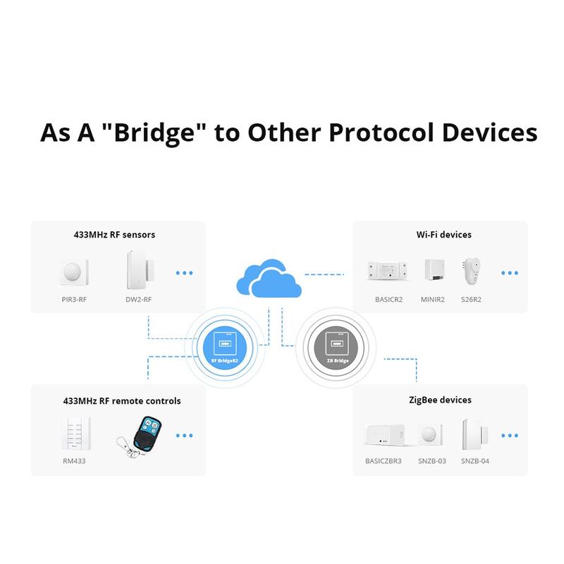 RF BridgeR2 on älykäs päivitys, jos käytät jo 433MHz:n RF-antureita tai kaukosäätimiä ja haluat helpomman ohjauksen ja automaation. Se auttaa yhdistämään RF-laitteet eWeLink-sovelluksessa, tukee turvallisuustilanteita ja ilmoituksia sekä lisää joustavuutta ajastimien ja jakamisen avulla. Käytännöllinen tapa laajentaa älykotia korvaamatta olemassa olevia RF-laitteita.