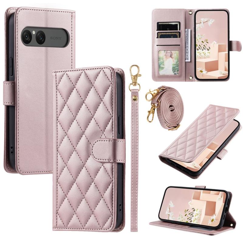 Ylellinen tikattu lompakko asia olkapää & rannehihna Sony Xperia 10 VII - Rhombus kuvio Suojakansi