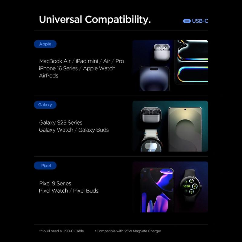 Spigen EE673EU on täydellinen all-in-one-latausratkaisu käyttäjille, joilla on useita laitteita. Voimakkaan virransyötön, älykkään virranhallinnan ja vankkojen turvaominaisuuksien ansiosta se takaa luotettavan nopean latauksen missä tahansa oletkin. Kompakti, tehokas ja rakennettu Spigenin luotettavalla laadulla, se on erinomainen valinta matkoille, töihin ja päivittäiseen käyttöön.