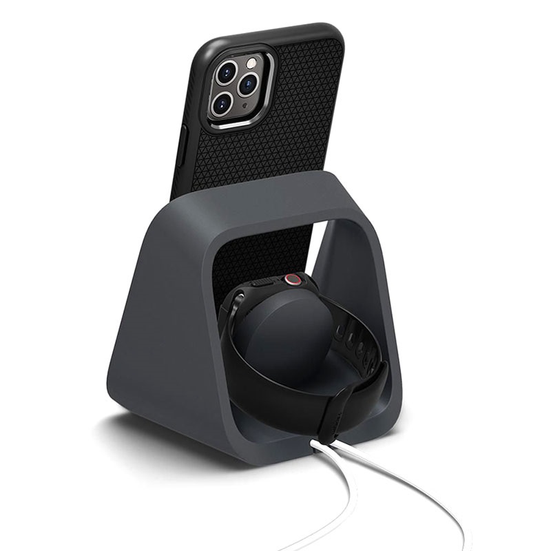 Toimiva Spigenin S316 -latausasema on tehty Apple Watchin ja iPhonen lataamiseksi. Tämä jalusta on kätevä eri laitteiden telakointia varten kotona ja matkoilla. S316-malli on valmistettu TPU-materiaalista, joten se on vakaa, käytännöllinen ja pitää laitteen laitteen mukavassa katselukulmassa.