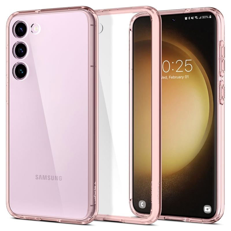 Spigen Ultra Hybrid -suojakuori suojaa Samsung Galaxy S23 5G:n ja antaa laitteen alkuperäisen muotoilun loistaa kirkkaan takapaneelin läpi.