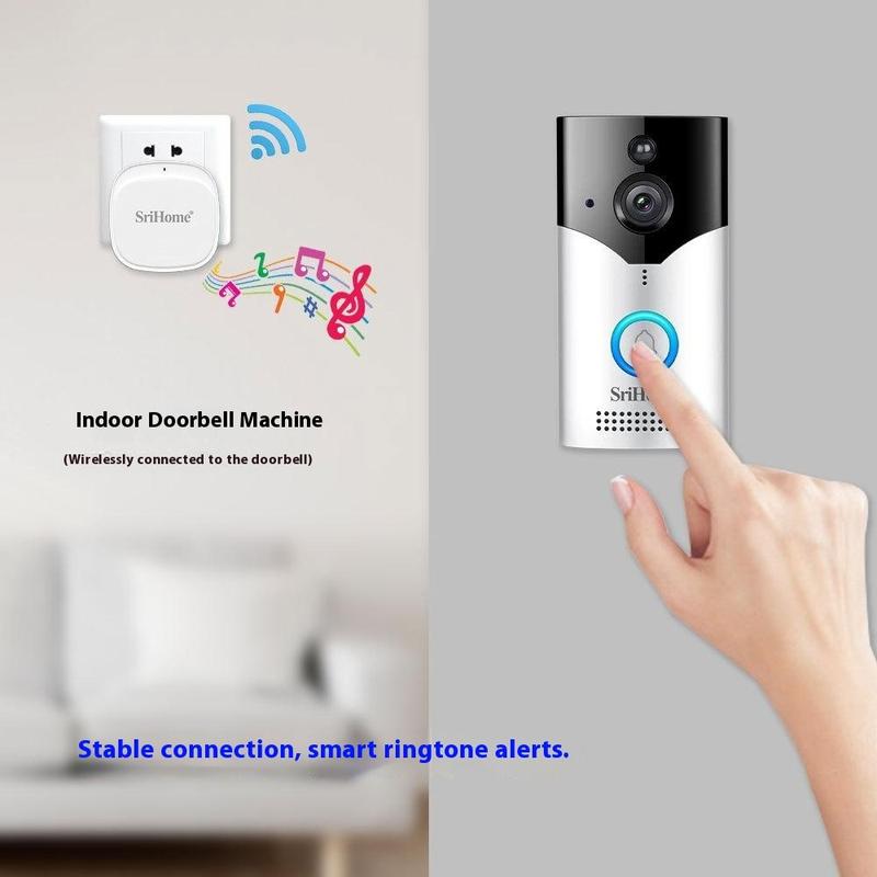 SRIHOME DH002 Älykäs video-ovikello - 4 megapikselin HD WiFi-kamera, jossa on yökuvaus, PIR-liiketunnistus ja kaksisuuntainen ääni