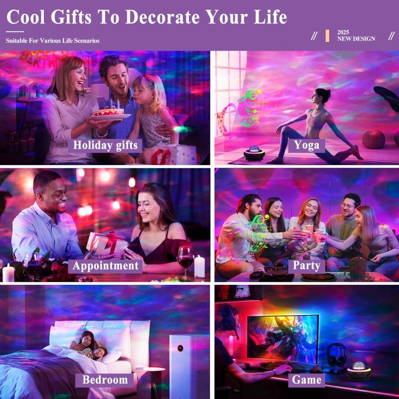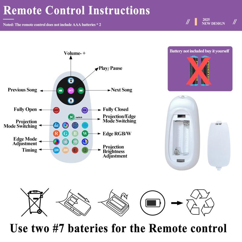 - Itsenäinen valonsäätö - säädä projektion kirkkautta, vaihda RGB-rengasta ja aseta 1 h / 2 h automaattinen sammutusajastin.