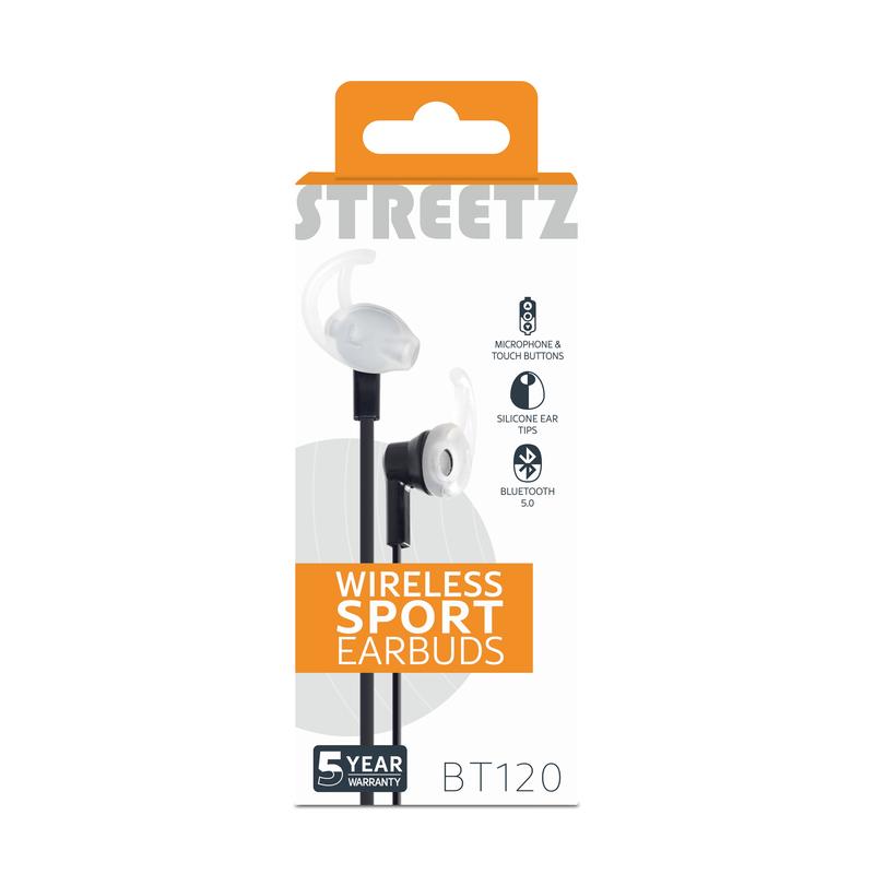 Streetz Stay-in-Ear Bluetooth-kuulokkeet mikrofonilla - langattomat urheilukuulokkeet media-/puhelupainikkeilla, Bluetooth 5, 1,2 m:n kaapeli