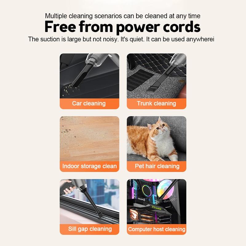 Suitu ST-6617C kannettava pölynimuri - 120W harjamoottori, 9000-12000Pa vahva imu, kannettava auton ja kodin puhdistuslaite