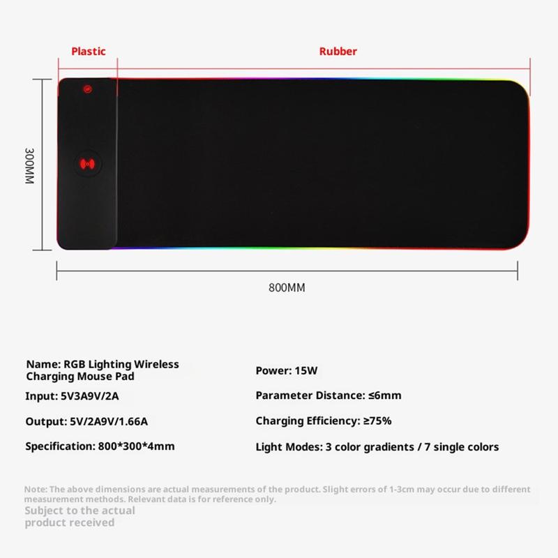 Suuri liukumaton RGB-näppäimistö/hiirityyny, jossa on 15W langaton laturi, LED-valaistus - 800×300×4mm