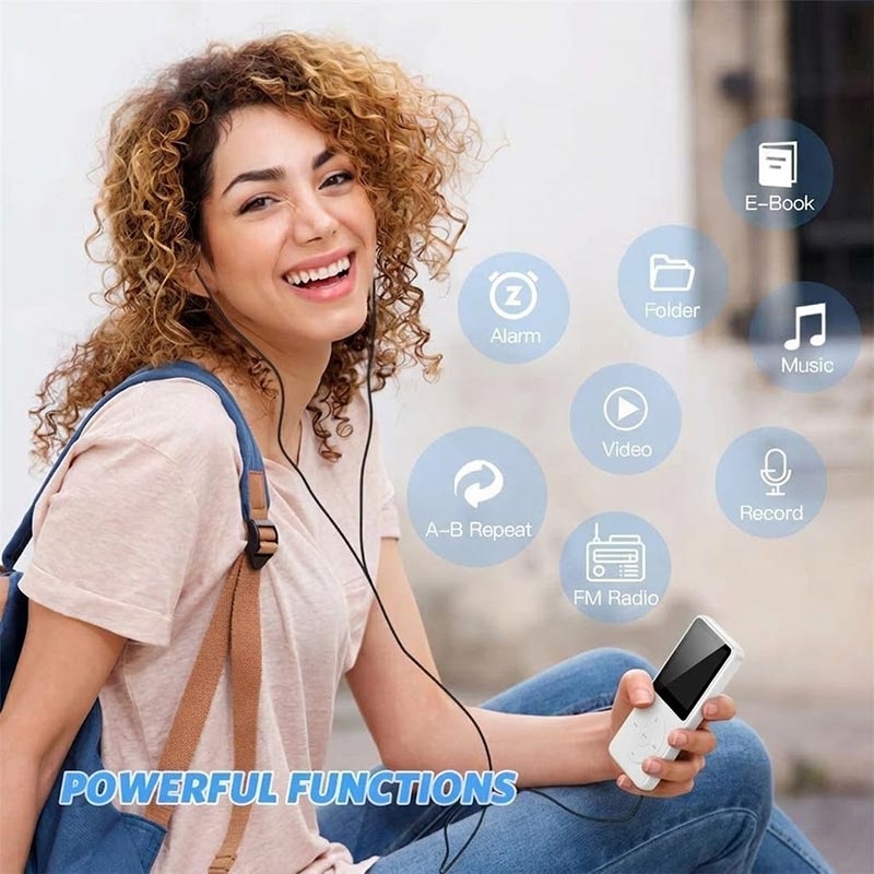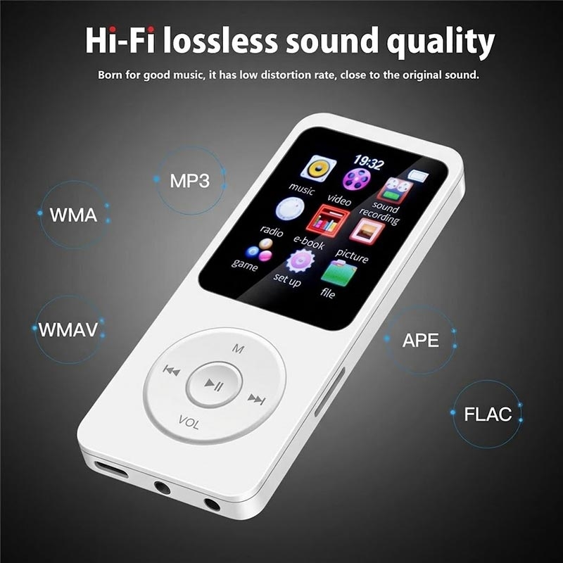 Pidä musiikkisi ja mediasisältösi taskussasi T1-kannettavan MP4-musiikkisoittimen avulla. Kompakti ja kevyt laite on suunniteltu päivittäiseen kuunteluun, ja se tukee useita äänimuotoja, kuten APE ja FLAC, häviöttömään toistoa varten. Musiikin lisäksi laite tukee myös videotoistoa, FM-radiota, e-kirjojen lukemista ja äänitallennusta, mikä tekee siitä kätevän all-in-one-viihdelaitteen työmatkoille, matkustamiseen, treenaamiseen tai opiskeluun.