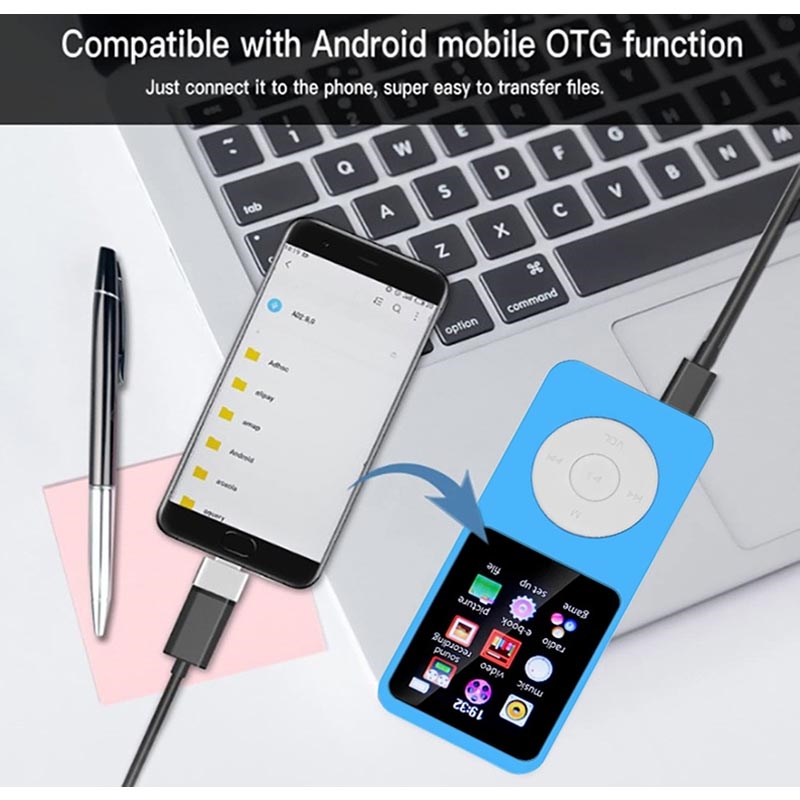 Pidä musiikkisi ja mediasisältösi taskussasi T1-kannettavan MP4-musiikkisoittimen avulla. Kompakti ja kevyt laite on suunniteltu päivittäiseen kuunteluun, ja se tukee useita äänimuotoja, kuten APE ja FLAC, häviöttömään toistoa varten. Musiikin lisäksi laite tukee myös videotoistoa, FM-radiota, e-kirjojen lukemista ja äänitallennusta, mikä tekee siitä kätevän all-in-one-viihdelaitteen työmatkoille, matkustamiseen, treenaamiseen tai opiskeluun.