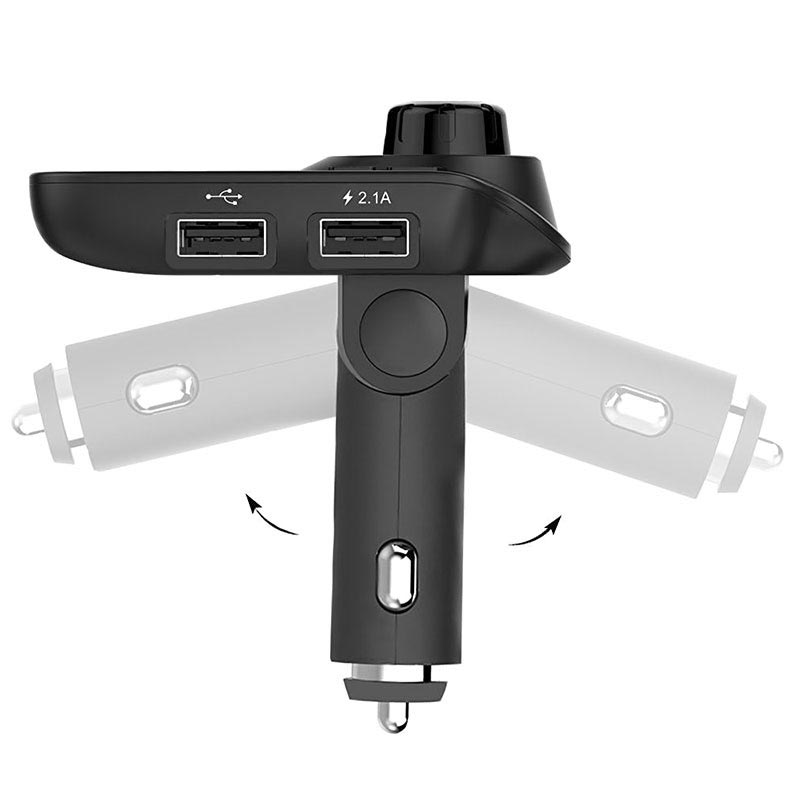 T11 Bluetooth FM-lähetin & 2.1A autolaturin kanssa. Tämä monitoiminen FM-lähetin voi suoratoistaa musiikkia 4 eri lähteestä, ja siinä on kaksi USB-porttia, jonka kautta voit yhdistää USB-aseman tai latausjohdon. Lisäksi tämä Bluetooth-autosarja tukee myös handsfree-puheluita sisäänrakennetun mikrofonin ansiosta.